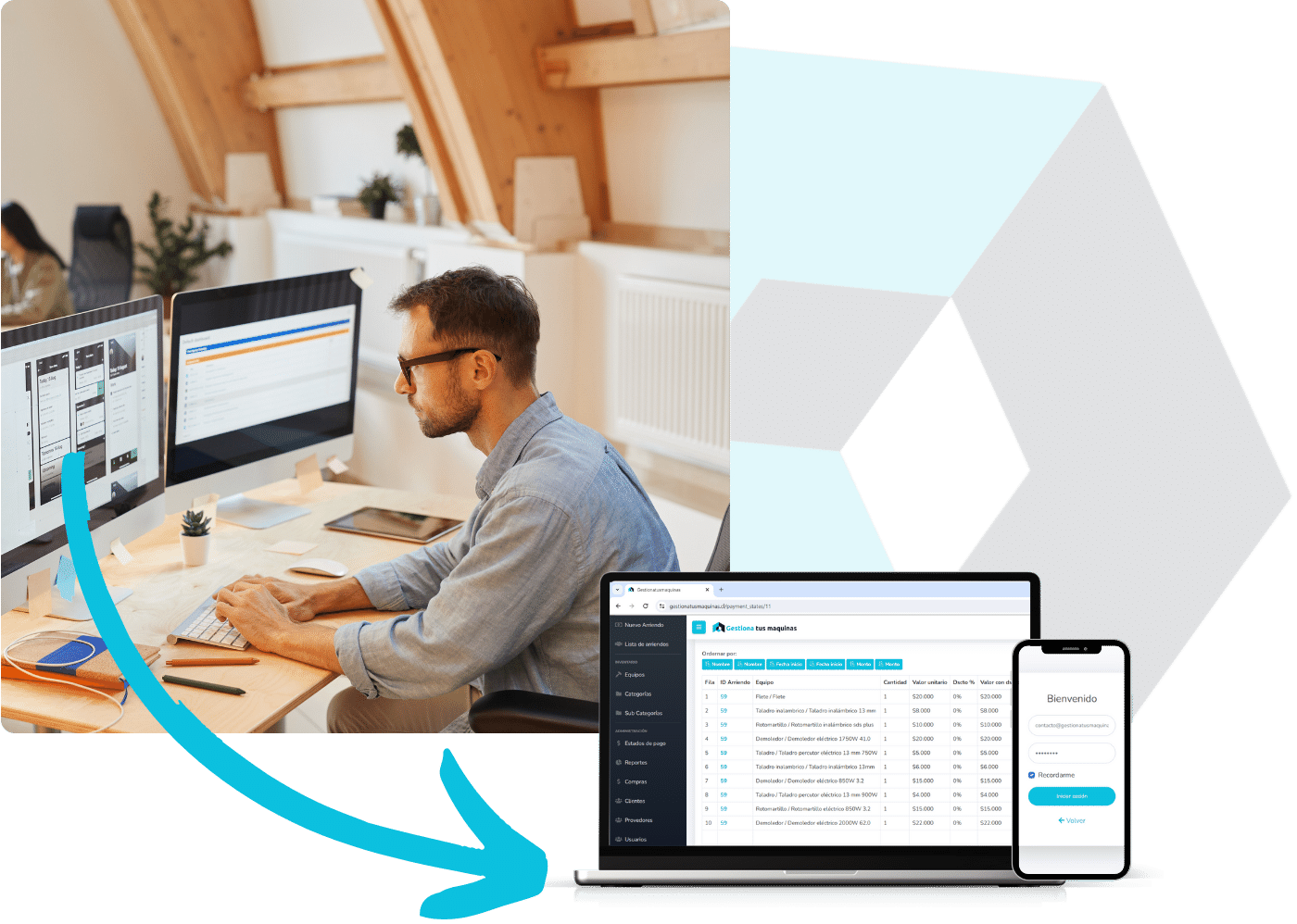 Con RentalControl centraliza la gestión de inventarios, arriendos, pagos y reportes en un entorno integrado. Optimiza cada etapa del proceso, mejora la eficiencia operativa y obtén una visión completa de tu negocio desde una única interfaz.
